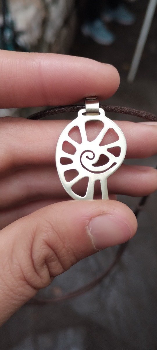 Este dije de Ammonite esta calado a mano sobre alpaca, es un amuleto ideal para llevar siempre.